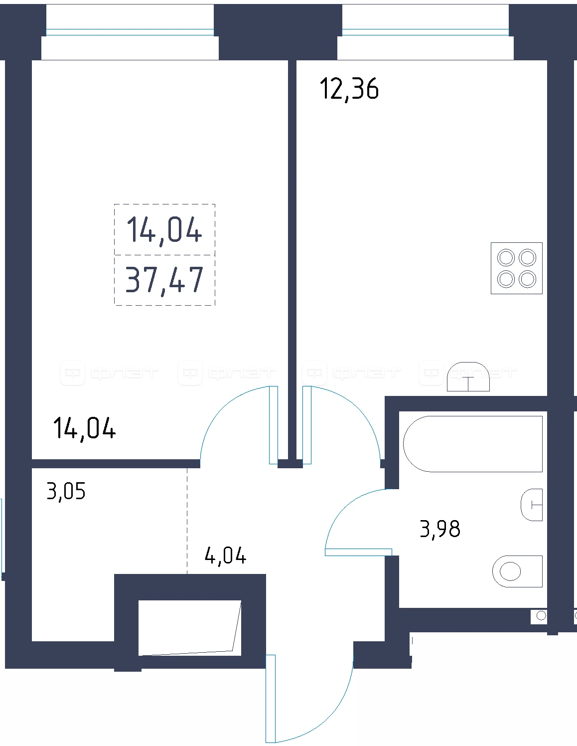- 37.47/14.04/12.36 м²