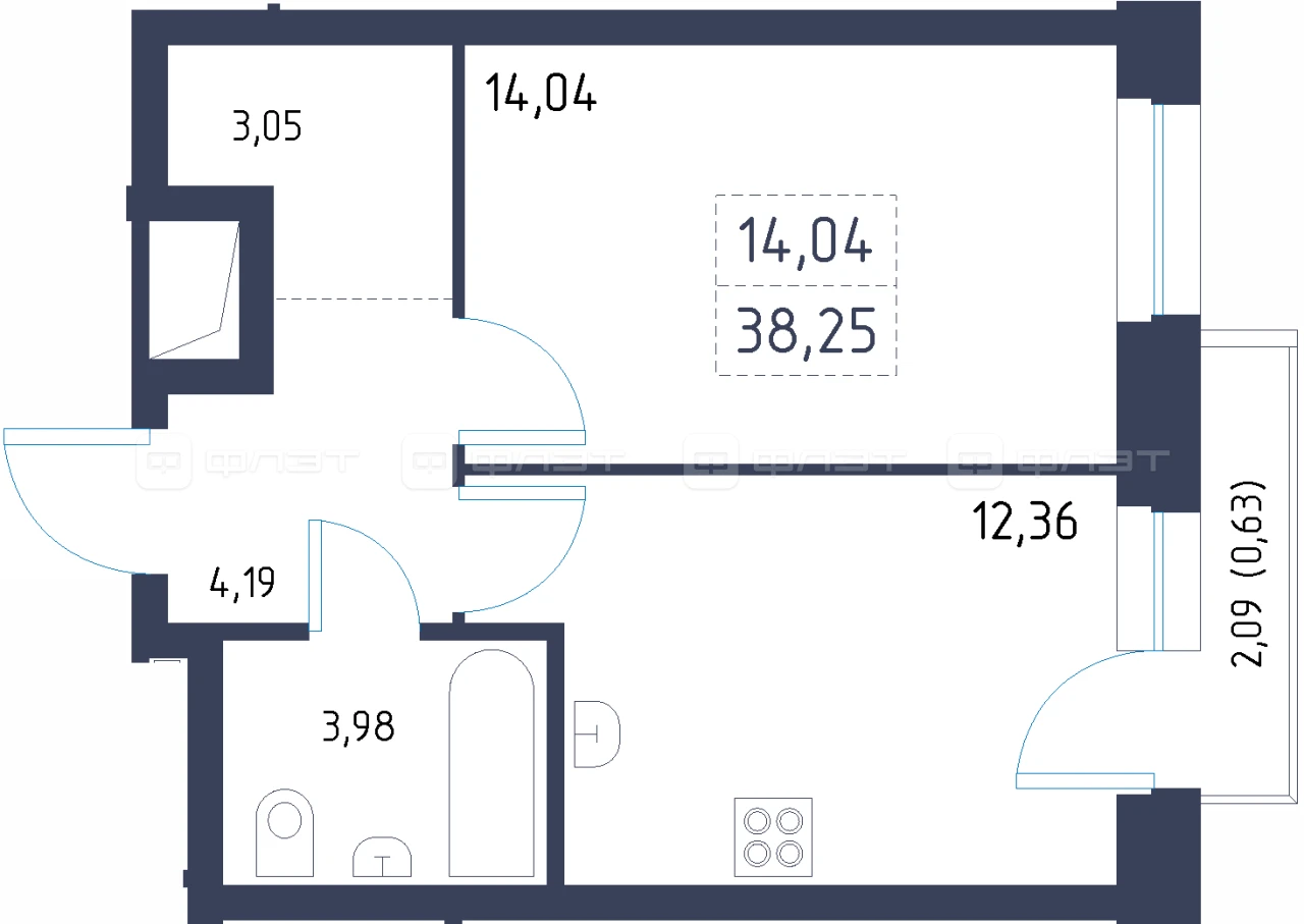 - 38.25/14.04/12.36 м²