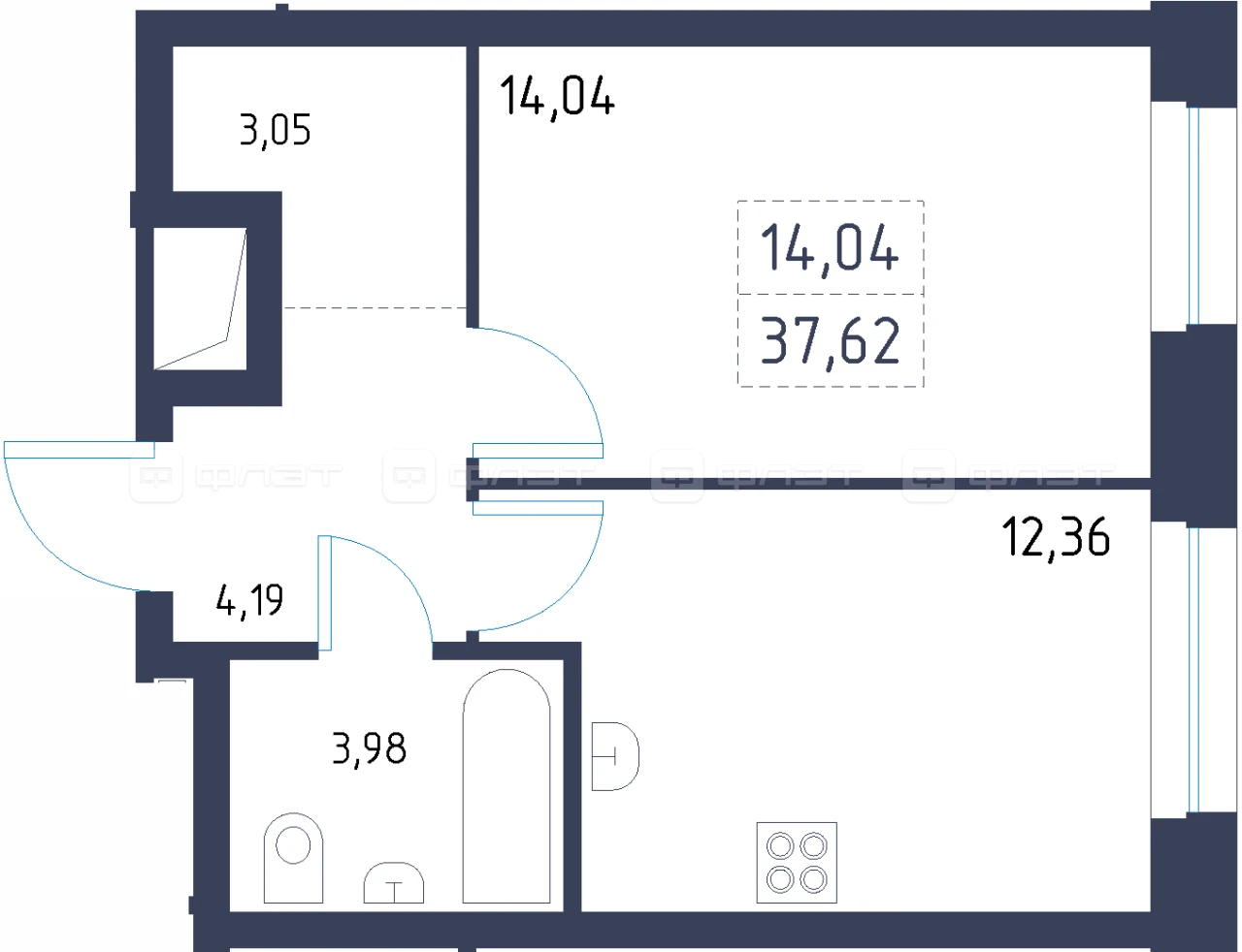 - 37.62/14.04/12.36 м²